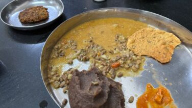 グルメ Hotel Nalapaka(バンガロール)|もろこしを使った「ジョラダ・ローティー」が絶品! バンガロールにある北カルナータカ料理のお店『Hotel Nalapaka(ホテル・ナラパカ)』。いただいた「Jowar Rotti Meals(ジョワール・ローティー・ミールス)」は、もろこしを使った香ばしい「ジョラダ・ローティー」や、トロみとコクのある「茄子のパルヤ」がたまらない美味しさ♪ グルメ