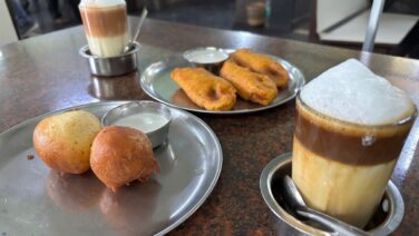 グルメ New Tajmahal Cafe(マンガロール)|絶品のマンガロールバンズをいただける老舗ティファン店 マンガロールの中心部にある老舗のティファン店『New Tajmahal Cafe(ニュー・タージマハル・カフェ)』。名物の「マンガロール・バンズ」は、サクふわの食感とバナナの甘過ぎない甘さが秀逸! これまで食べたベストのバンズです。 グルメ
